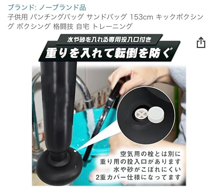 • 土台に砂や水を入れることで、安定感のあるパンチングバッグになりガンガン打ち込めます。お子様だけでなく、大人の方でもお使い頂けるサイズをご用意しました。