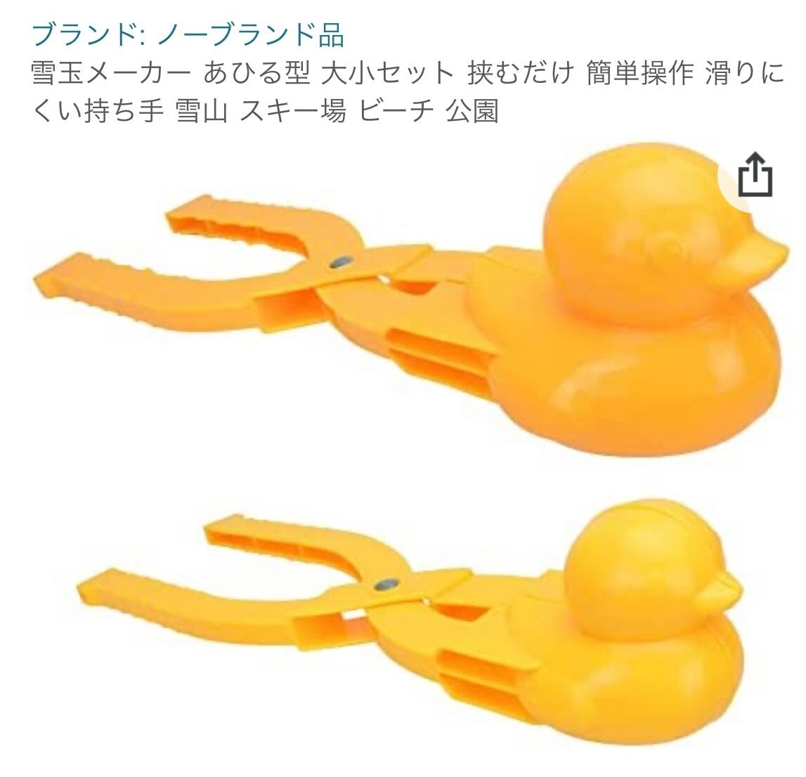 雪玉メーカー あひる型 大小セット 挟むだけ 簡単操作 滑りにくい持ち手 雪山 スキー場 ビーチ 公園