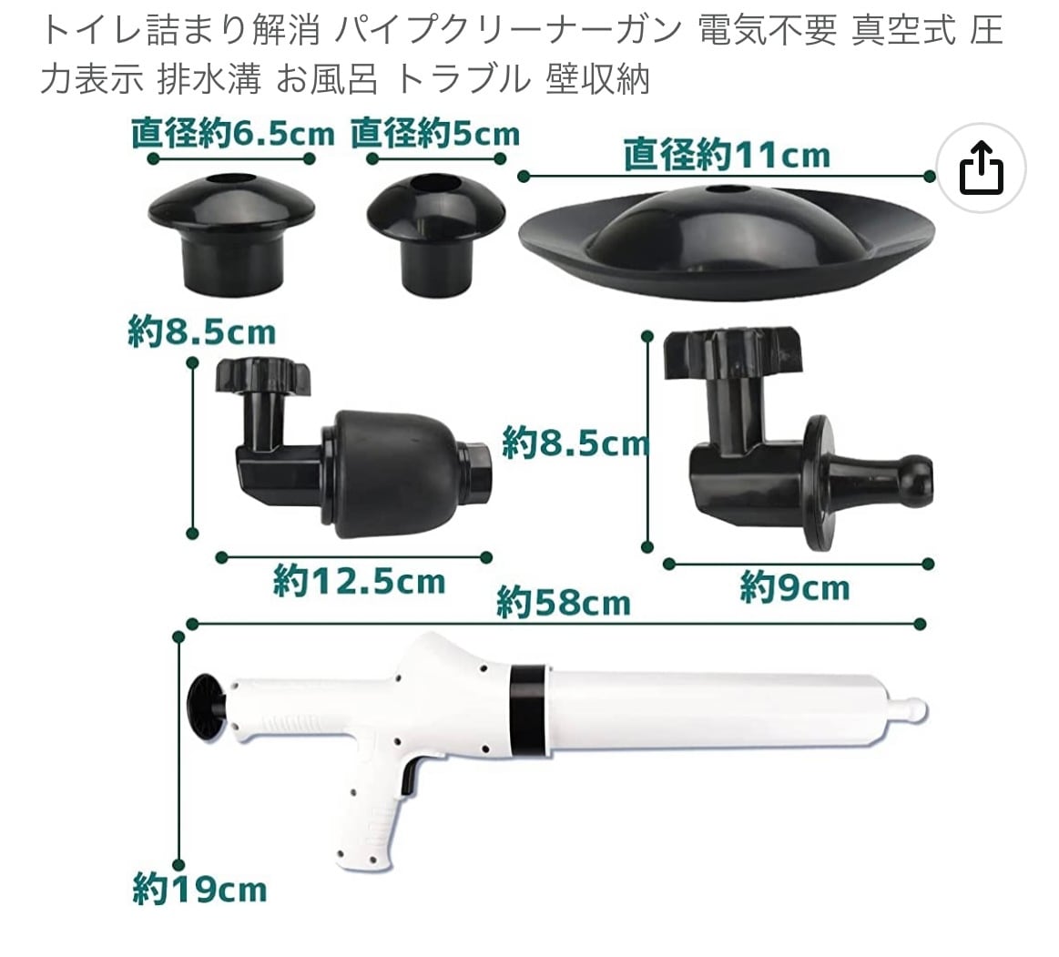 トイレ詰まり解消 パイプクリーナーガン 電気不要 真空式 圧力表示 排水溝 お風呂 トラブル 壁収納