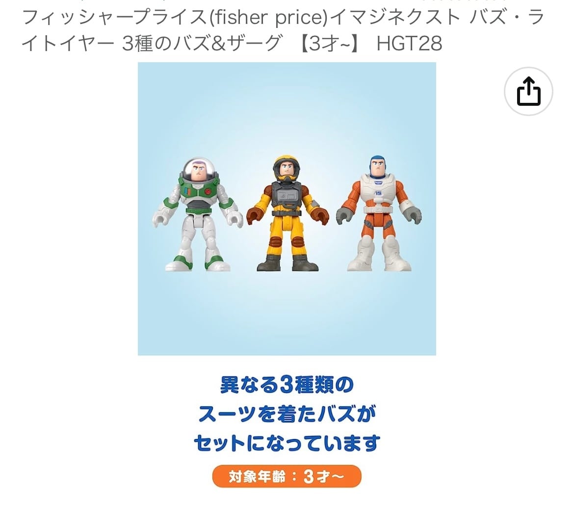 ・【内容】バズ・ライトイヤーのフィギュア&アクセサリーセット。コスチュームが異なる3種類のバズと、ザーグ、アクセサリーが2つ入っています。フィギュアは手足を自由に動かすことができます。