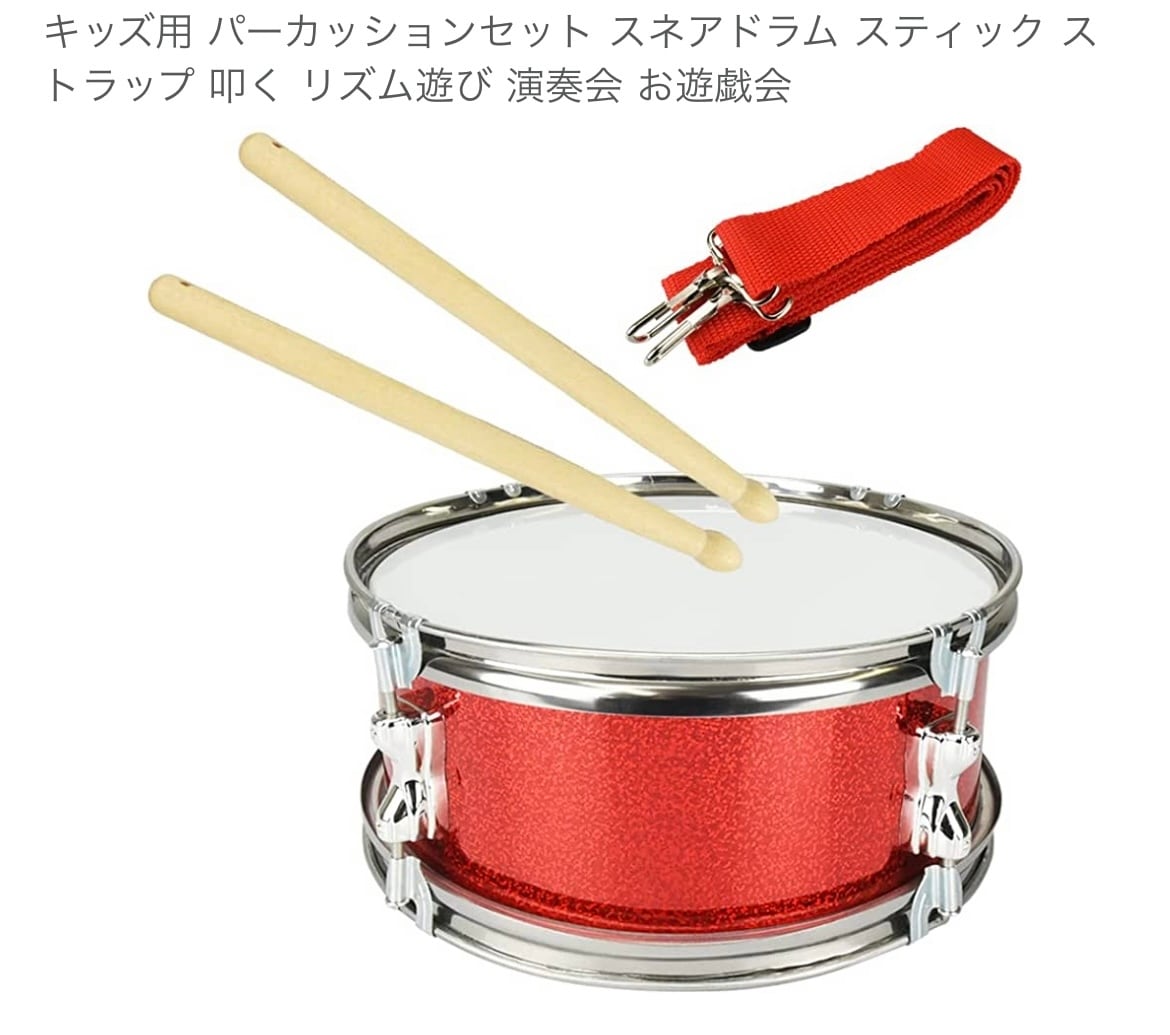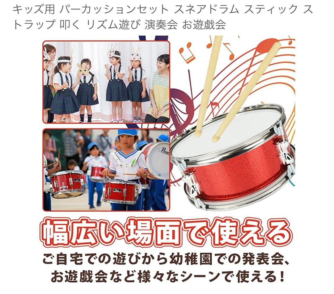 キッズ用 パーカッションセット スネアドラム スティック ストラップ 叩く リズム遊び 演奏会 お遊戯会